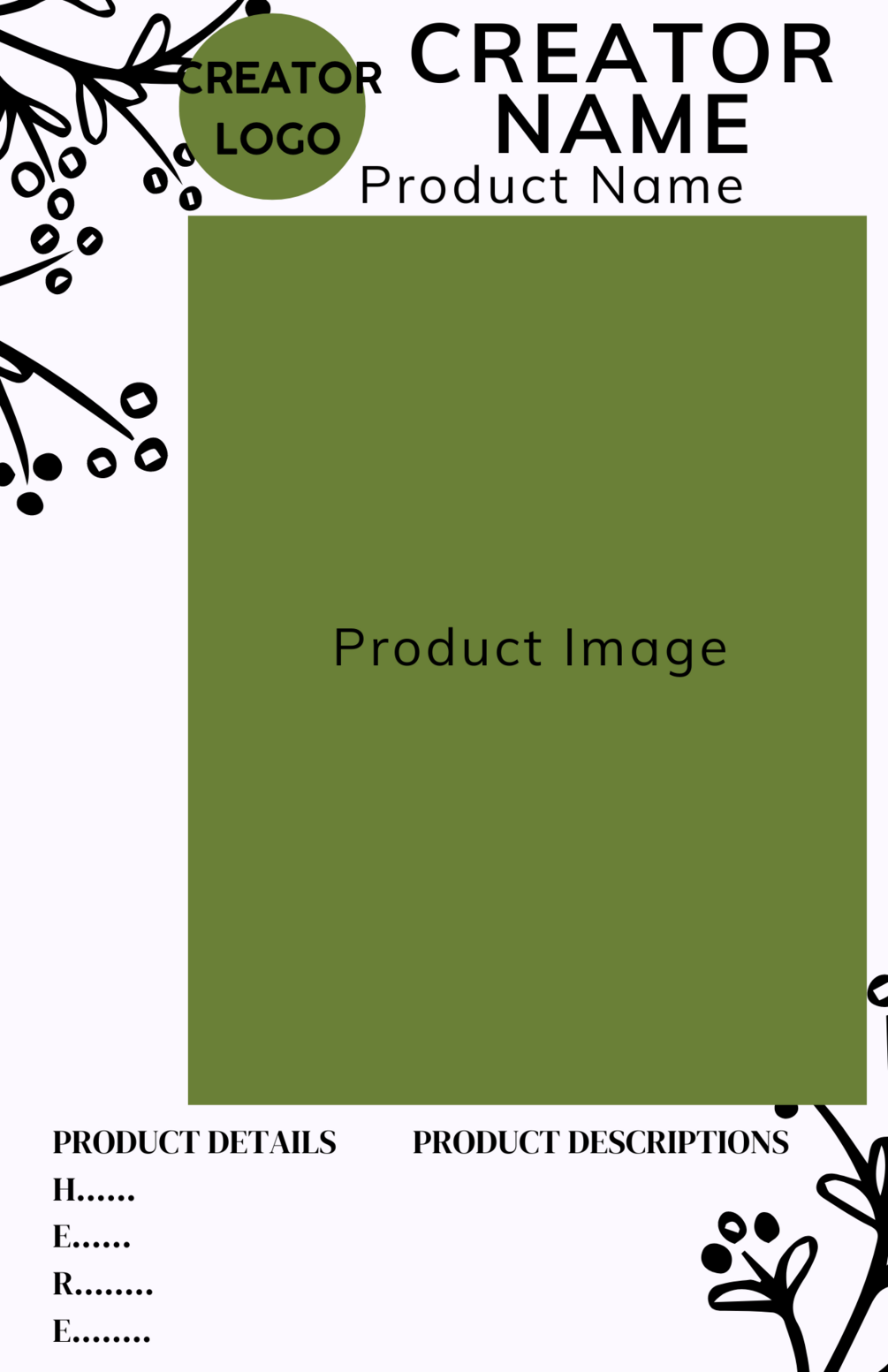If you would like me to do your product pages for you with the files I have you can pay me $2 for Each product preview made.